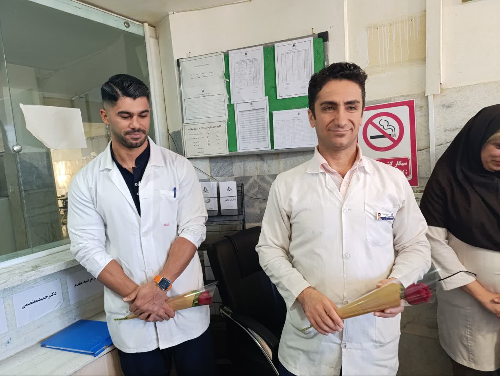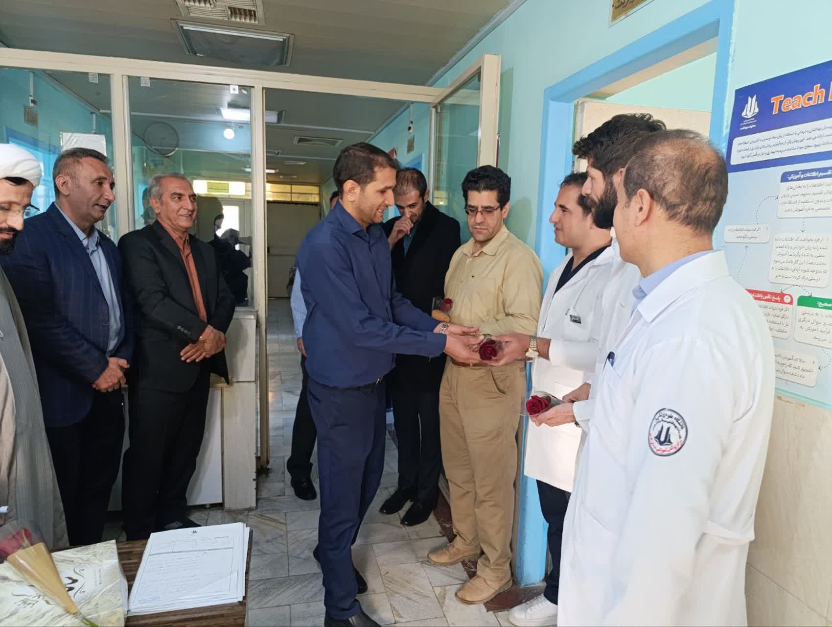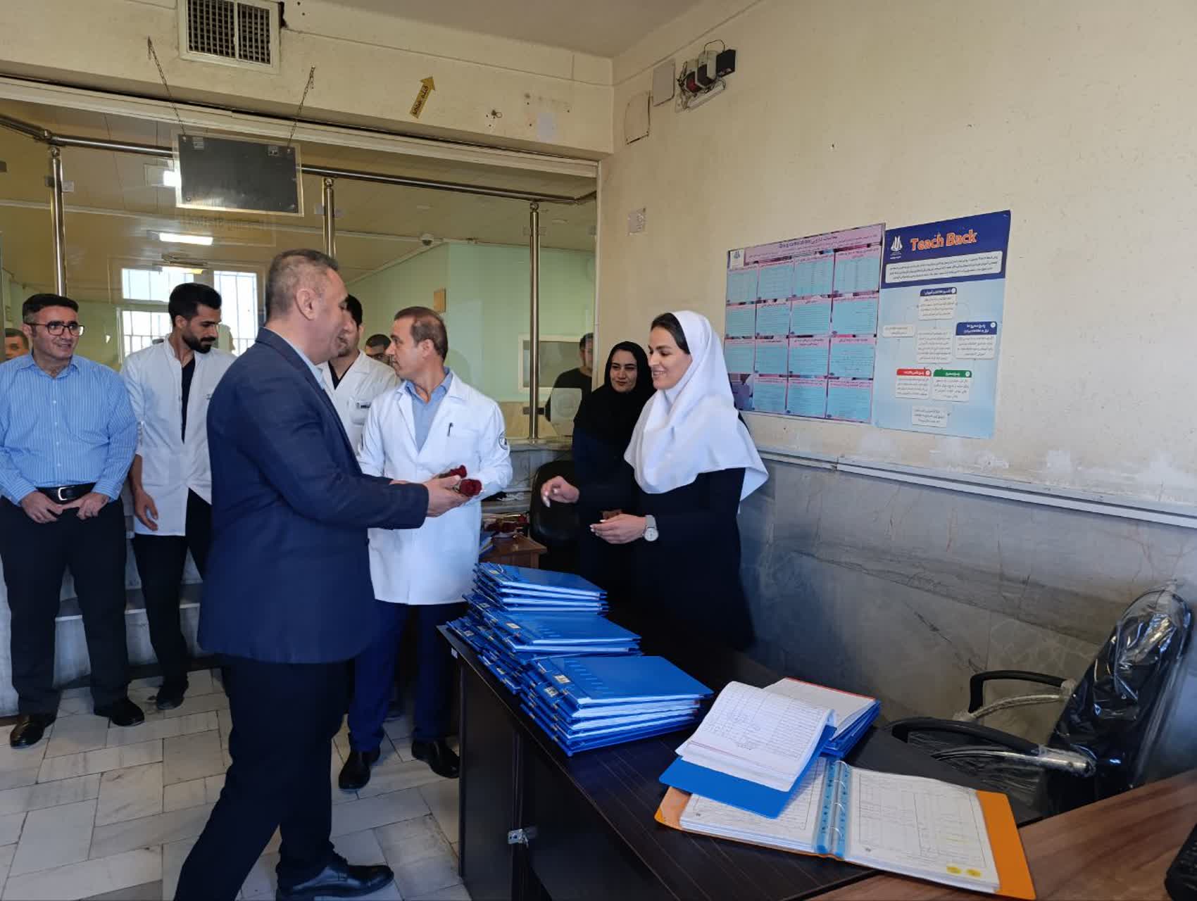 بازدید صمیمی معاونت دانشجویی و معاونت پژوهشی همراه ریاست بیمارستان و دفتر پرستاری از بخش های بیمارستان از تلاش و فداکاری پرستاران با اهدای شاخه گل و شیرینی تقدیر و تشکر به عمل آمد .