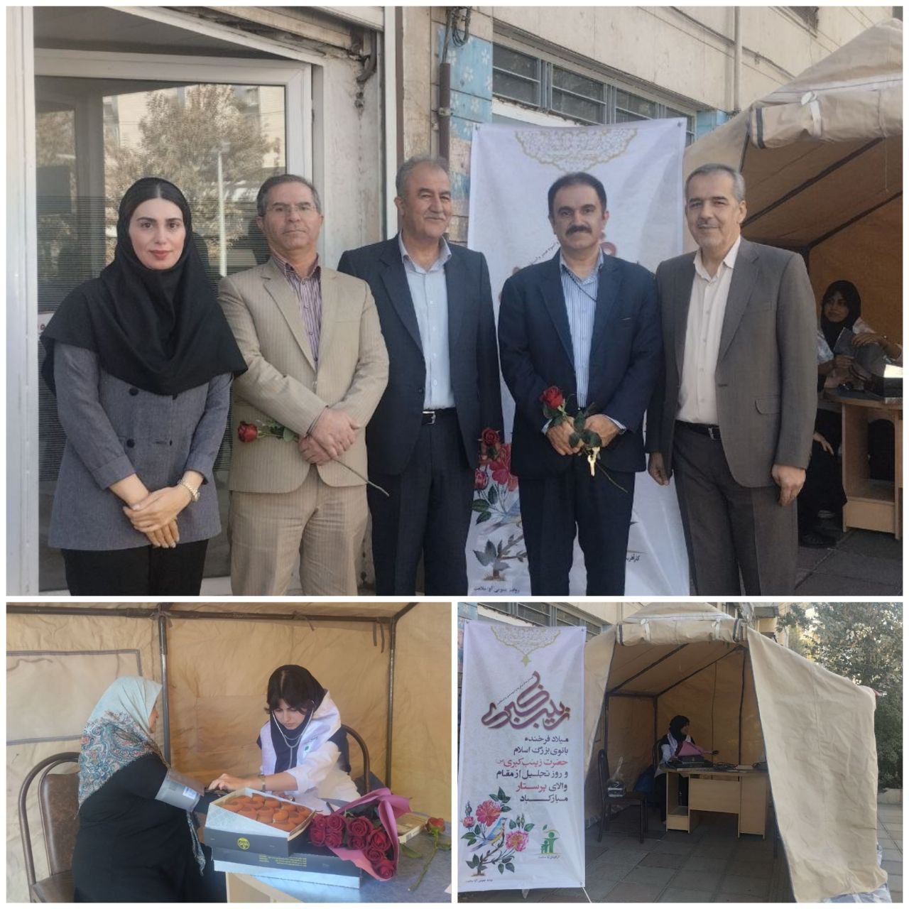 به مناسبت گرامیداشت ولادت حضرت زینب کبری (سلاماللهعلیها) و روز پرستار، در تاریخ ۵ آبانماه، غرفه سلامت با حضور ریاست محترم دانشکده پرستاری و مامایی، جناب آقای دکتر صیدی و هیئت همراه در منطقه یادشده برپا شد.